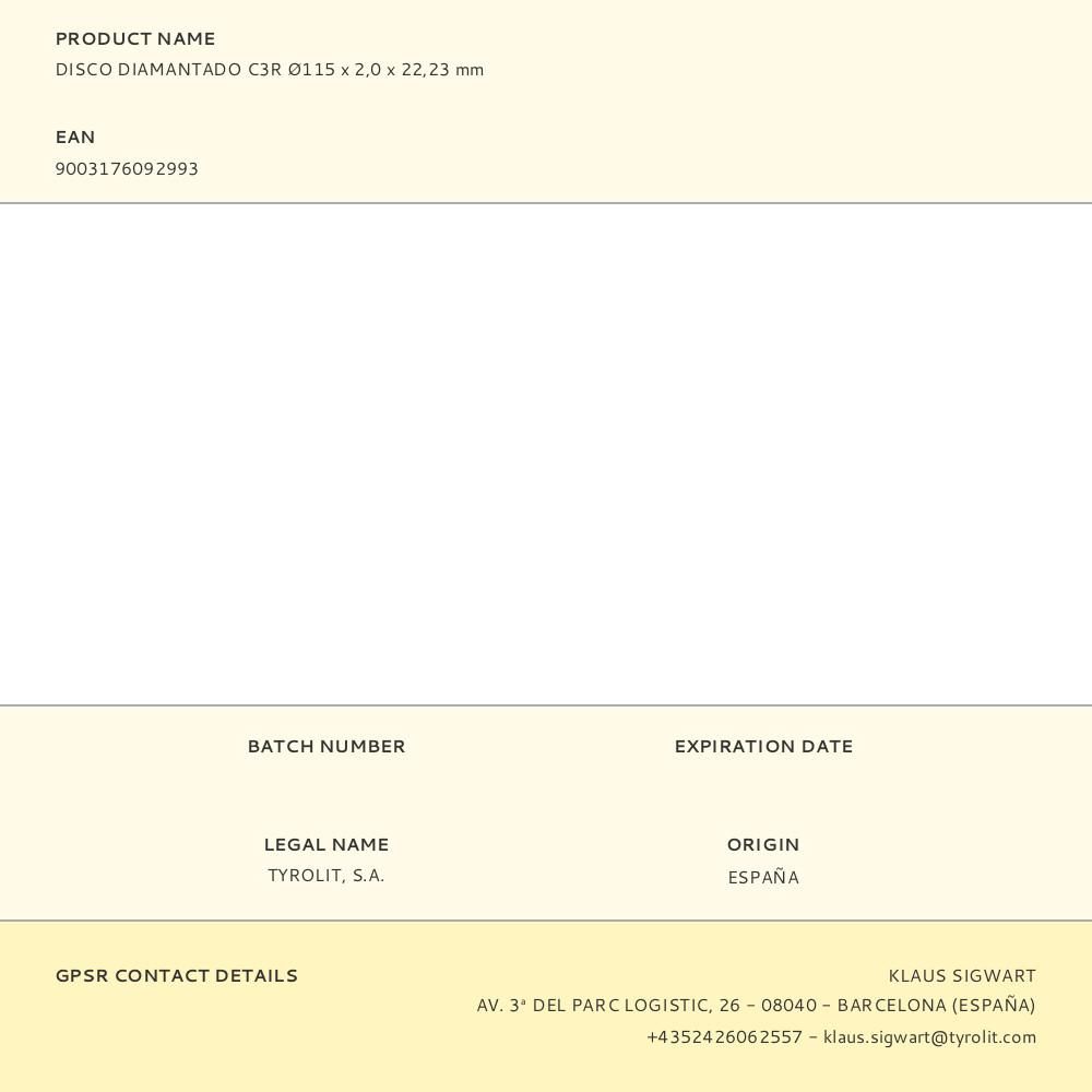 DISCO DIAMANTADO CONTINUO C3R Ø115 x 2,0 x 22,23 mm