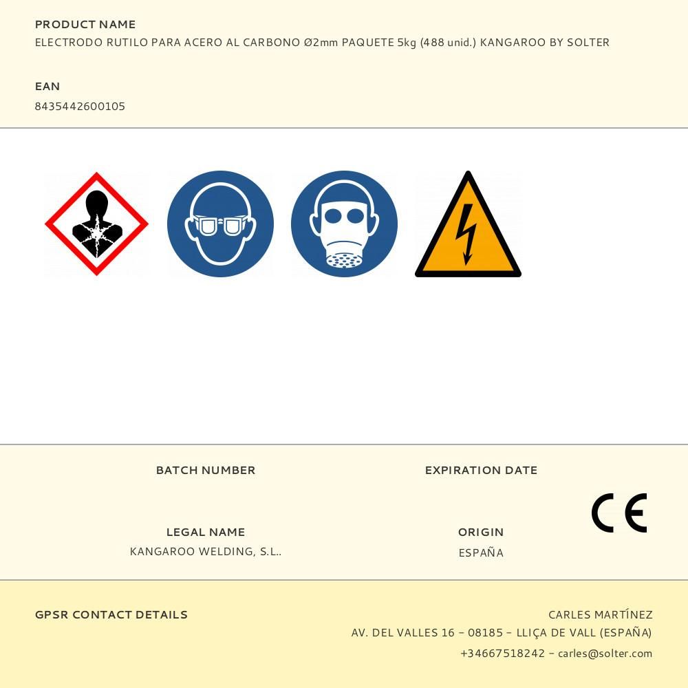 ELECTRODO RUTILO PARA ACERO AL CARBONO Ø2mm PAQUETE 5kg (488 unid.) KANGAROO BY SOLTER