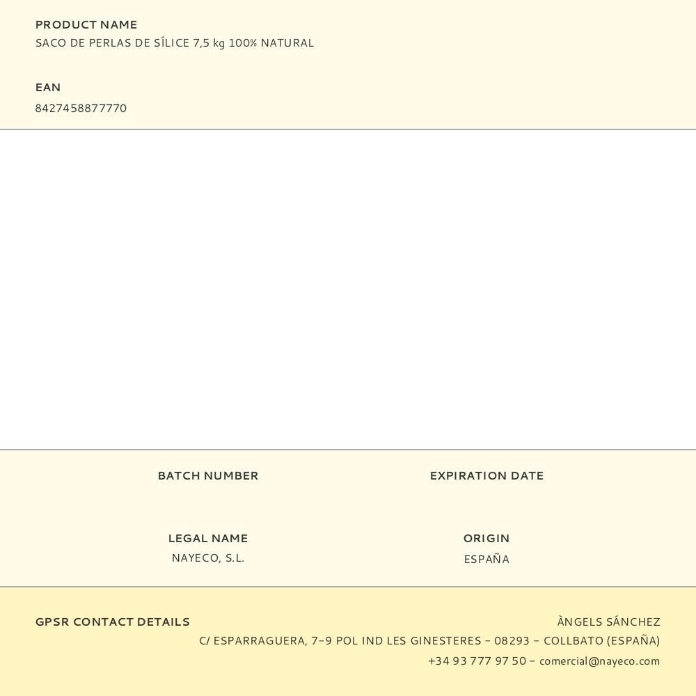 SACO DE PERLAS DE SÍLICE 7,5 kg 100% NATURAL