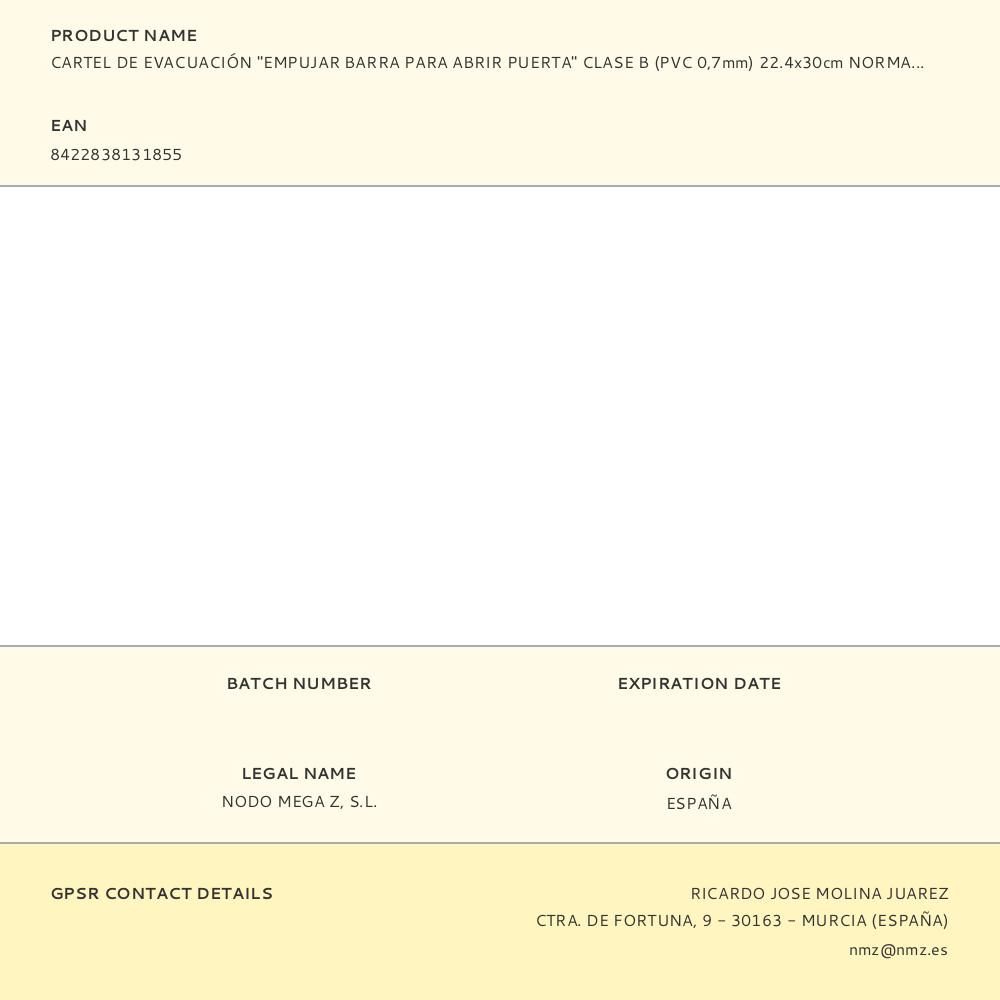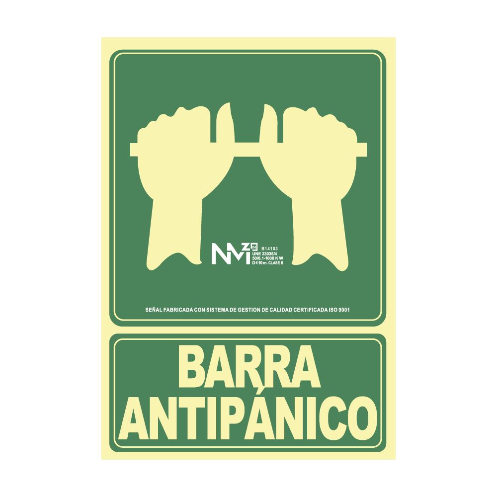 CARTEL DE EVACUACIÓN "EMPUJAR BARRA PARA ABRIR PUERTA" CLASE B (PVC 0,7mm) 22.4x30cm NORMALUZ