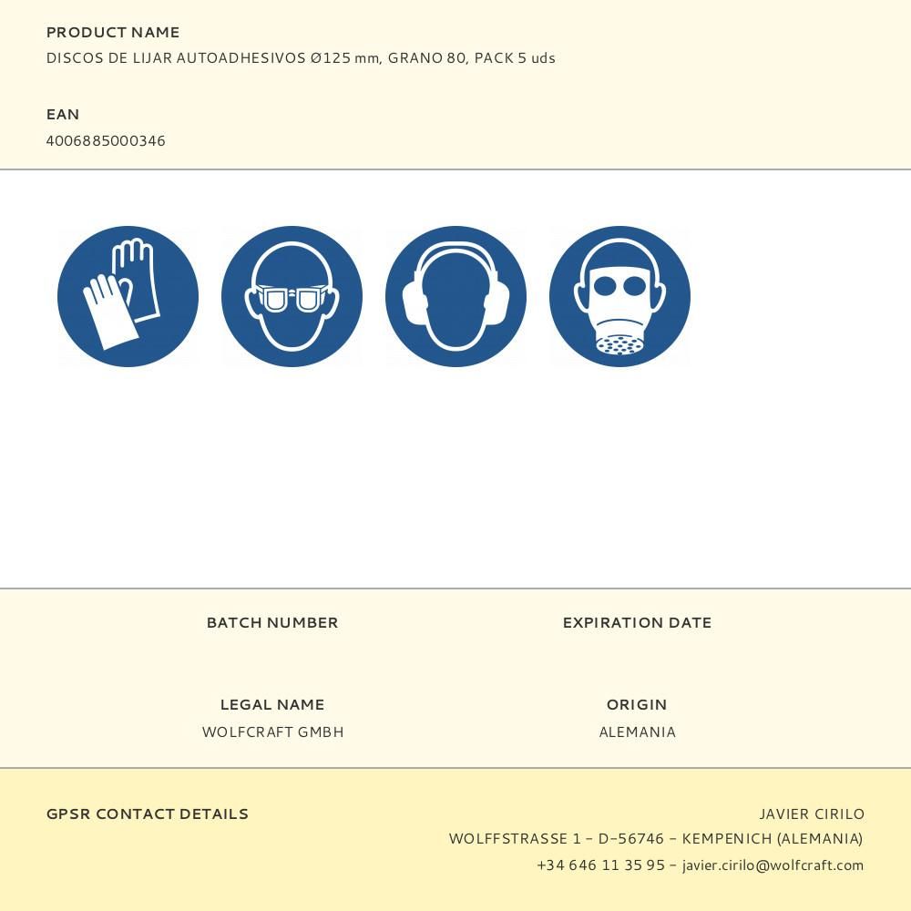 DISCOS DE LIJAR AUTOADHESIVOS Ø125 mm, GRANO 80, PACK 5 uds