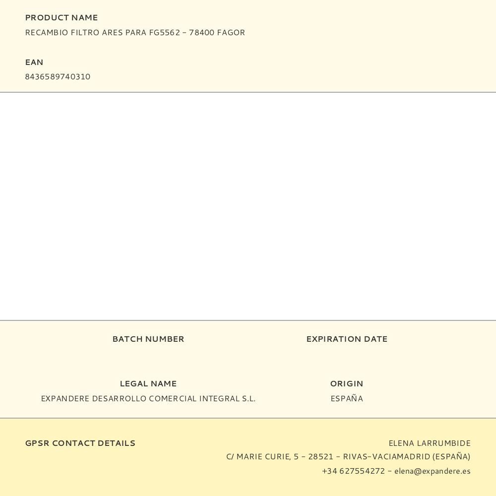 RECAMBIO FILTRO ARES PARA FG5562 - 78400 FAGOR