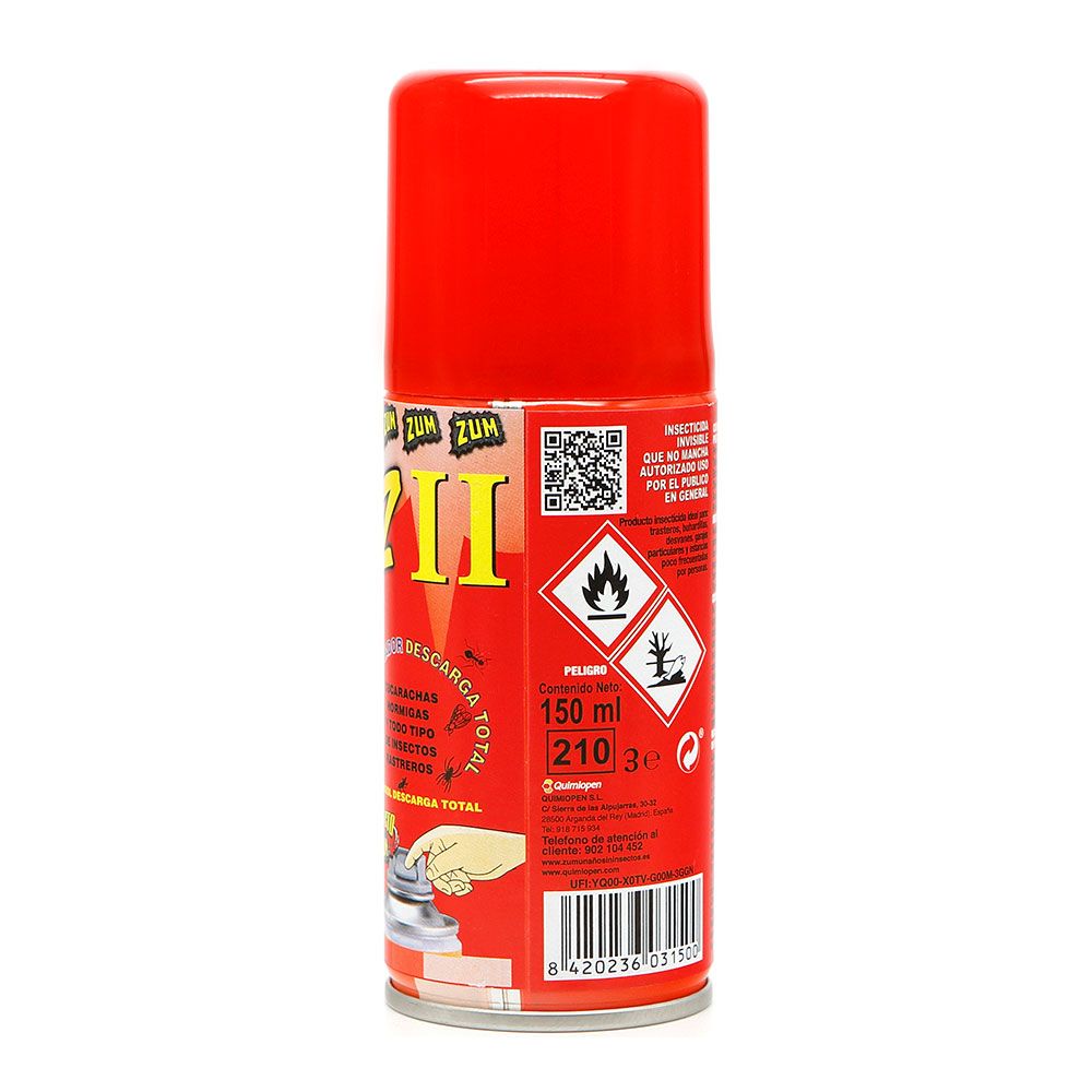INSECTICIDA DESCARGA TOTAL ZII INSECTOS RASTREROS Y VOLADORES 150 ml. ELIMINA INSECTOS RASTREROS Y VOLADORES EN LUGARES DE DIFÍCIL ACCESO: TRASTEROS, BUHARDILLAS, DESVANES Y ESTANCIAS POCO FRECUENTADAS POR PERSONAS