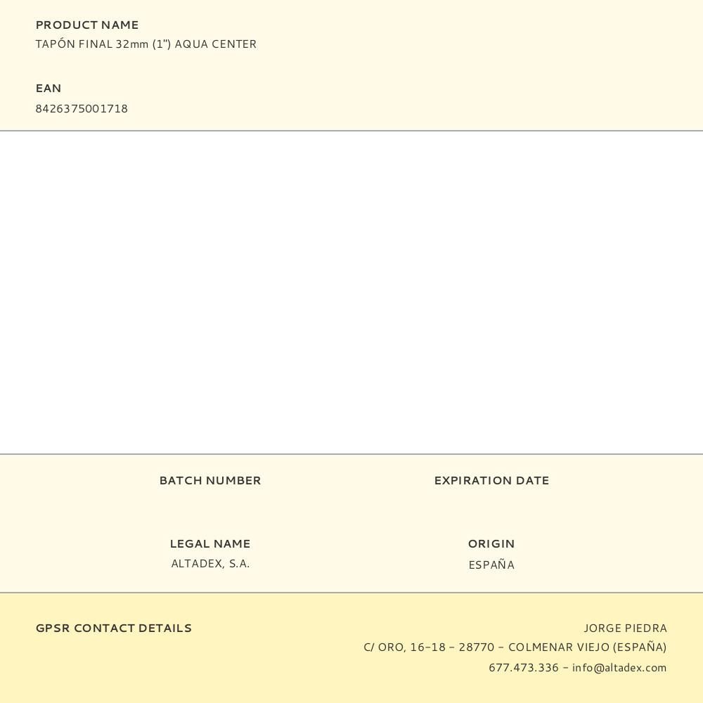 TAPÓN FINAL 1 pulg. MATERIAL: POLIETILENO. TRATAMIENTO ANTI UV