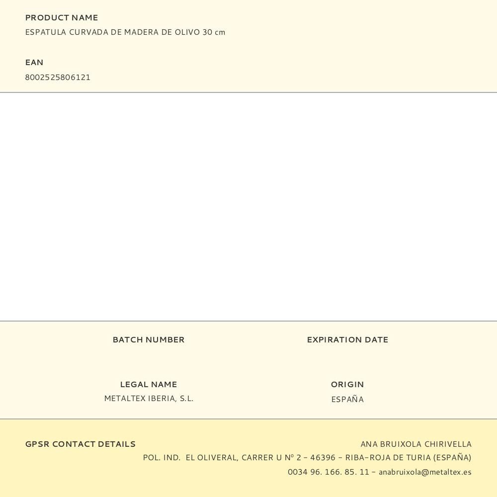 ESPÁTULA CURVADA DE MADERA DE OLIVO 30 cm