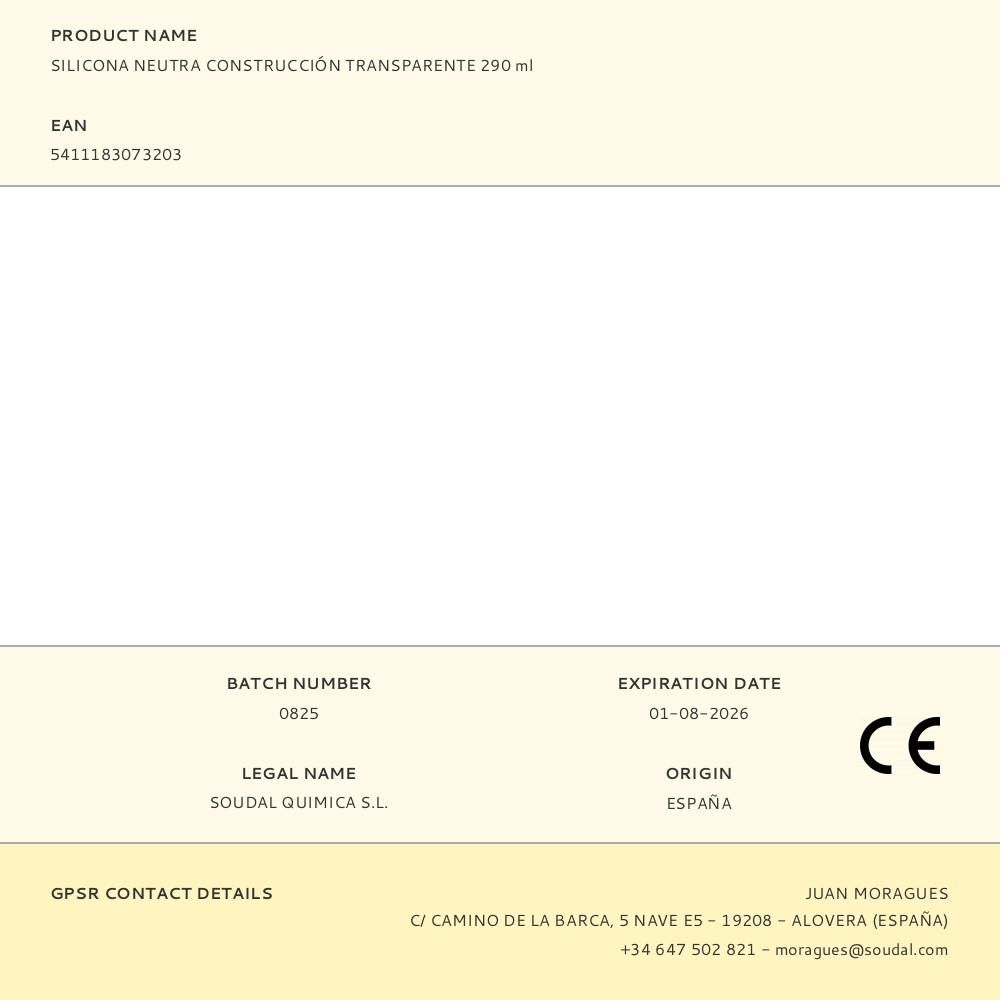 SILICONA NEUTRA CONSTRUCCIÓN TRANSPARENTE 290 ml