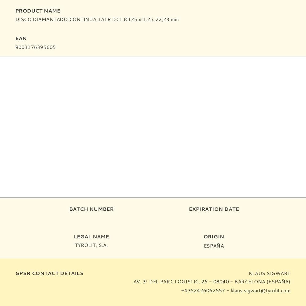 DISCO DIAMANTADO CONTINUA 1A1R DCT Ø125 x 1,2 x 22,23. PARA BALDOSAS CERÁMICAS, GRES CERÁMICO, ETC