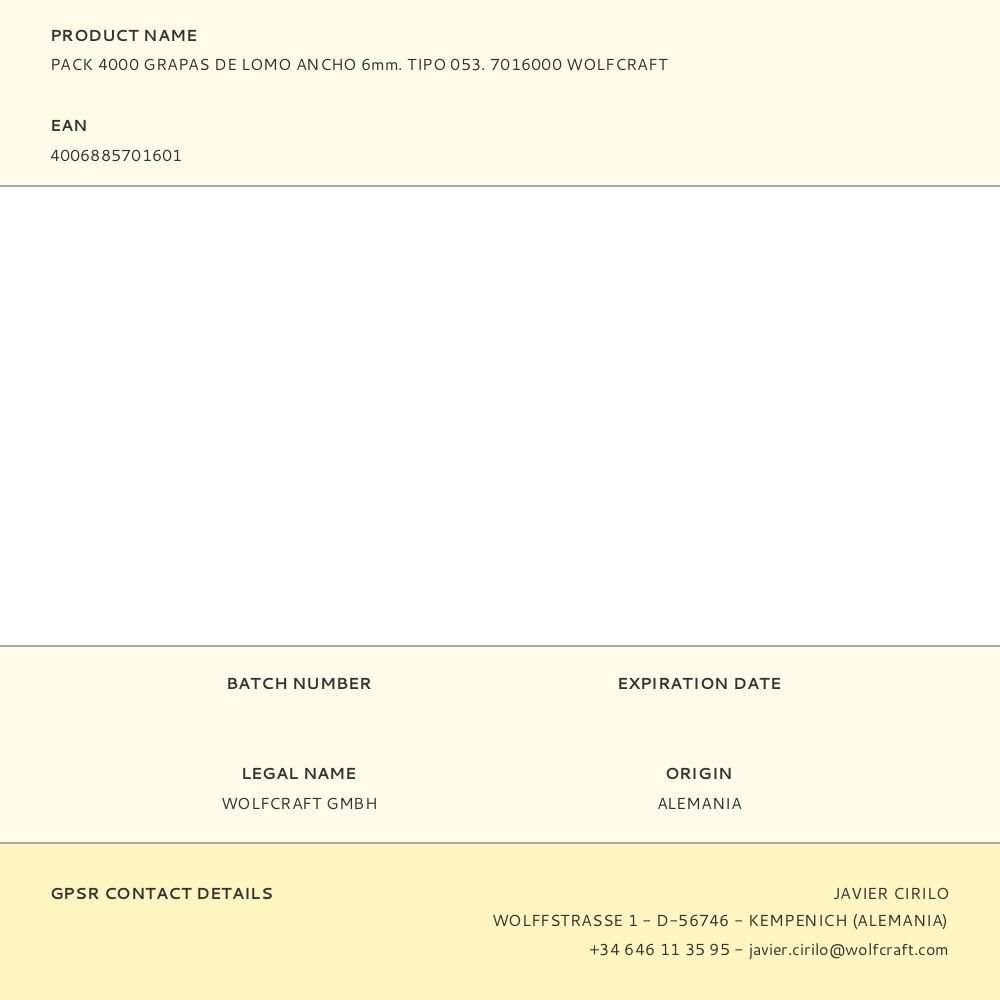 PACK 4000 GRAPAS DE LOMO ANCHO 6mm. TIPO 053. 7016000 WOLFCRAFT