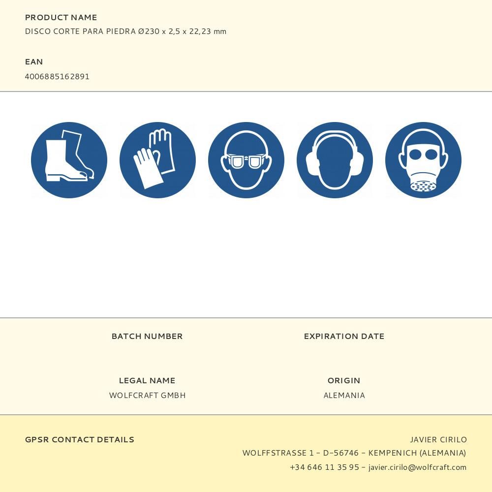 DISCO CORTE PARA PIEDRA Ø230 x 2,5 x 22,23 mm. PARA TRONZAR. AMOLADORAS ANGULARES. VELOCIDAD MÁXIMA 80m/SEC. SEGÚN EN 12413