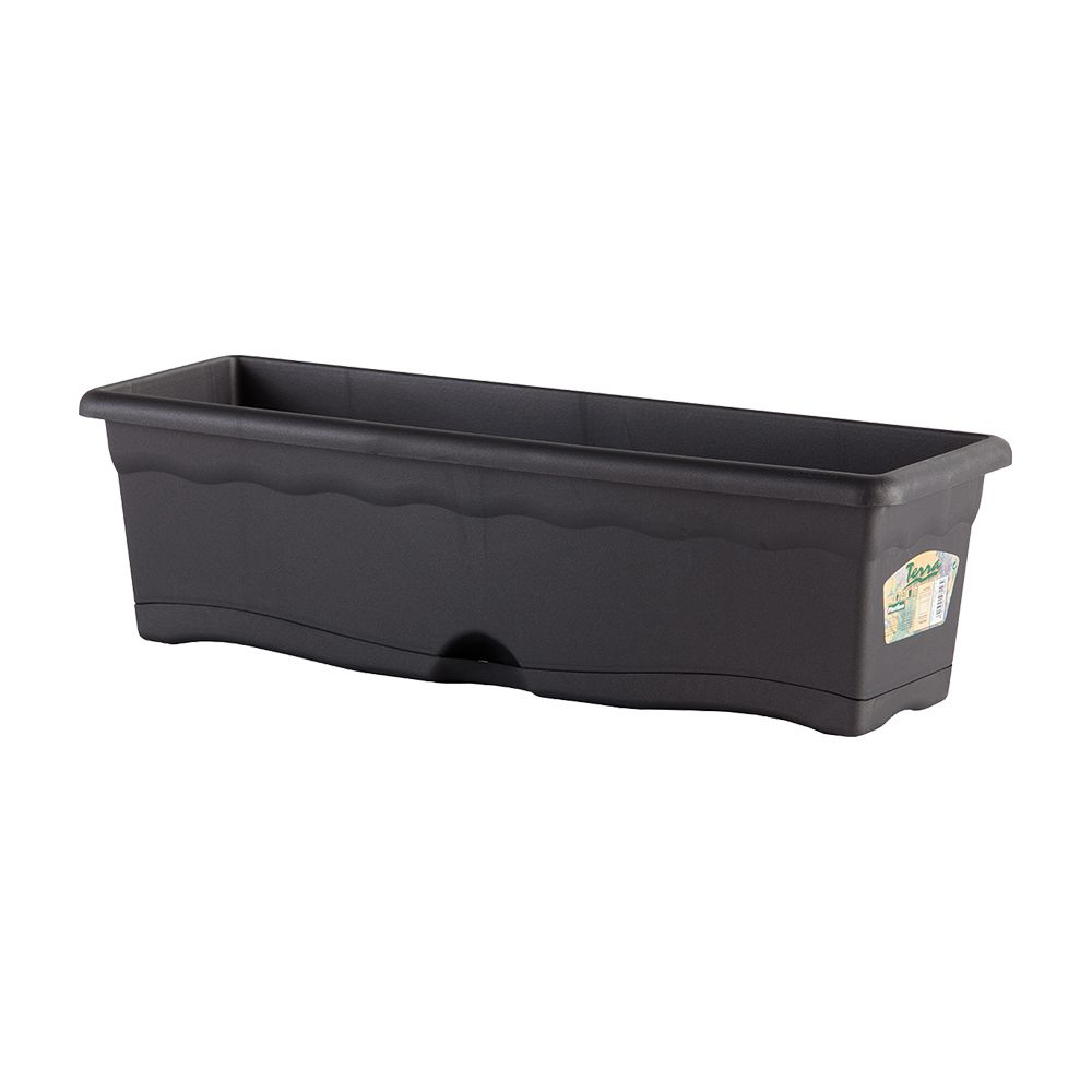 JARDINERA CON PLATO INTEGRADO COLOR ANTRACITA 80x20cm