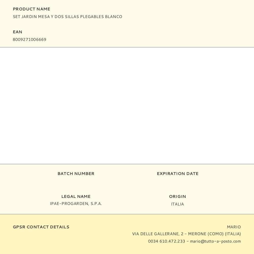 SET JARDÍN MESA Y DOS SILLAS PLEGABLES BLANCO