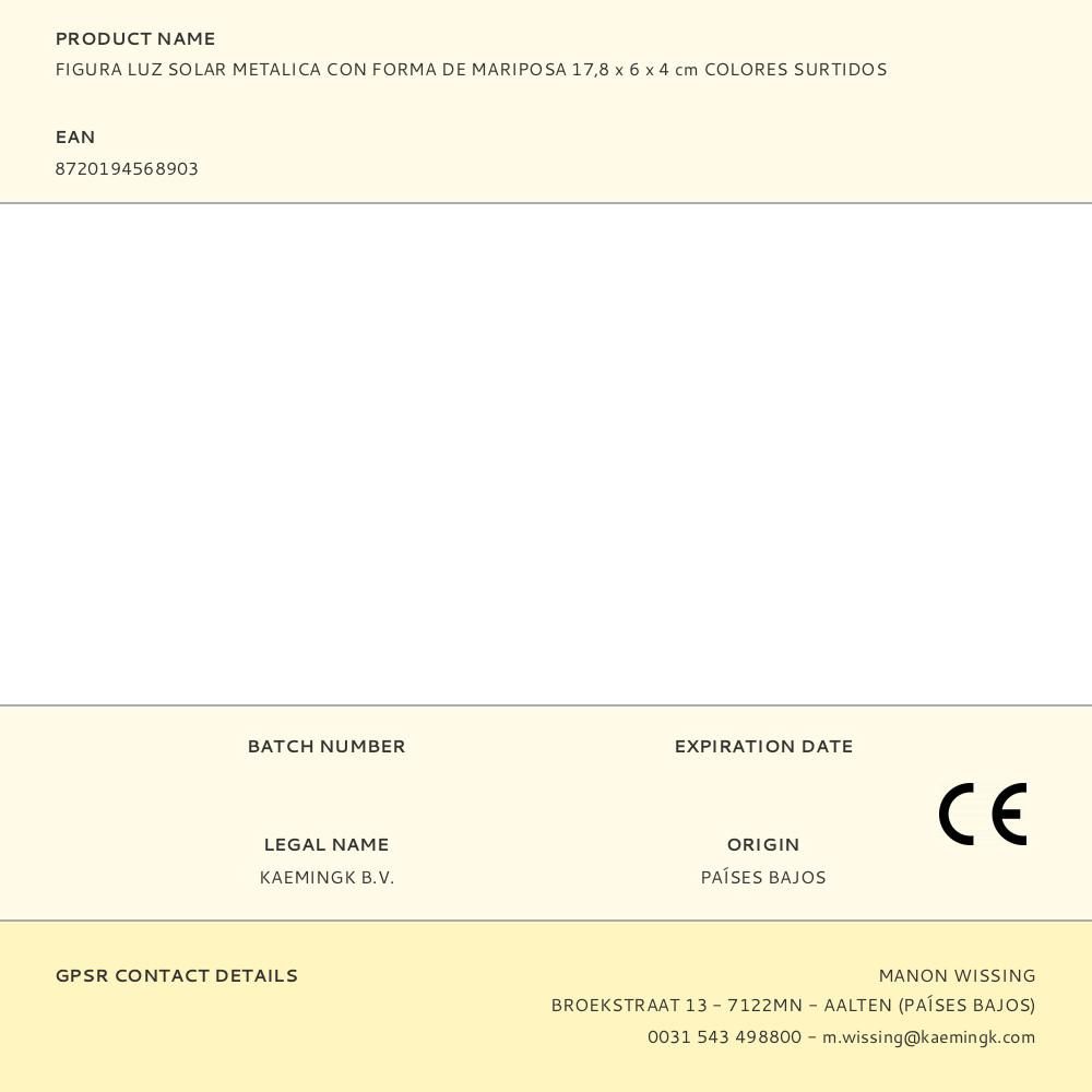 FIGURA SOLAR METÁLICA CON FORMA DE MARIPOSA COLORES SURTIDOS 17,8 x 6 x 4 cm