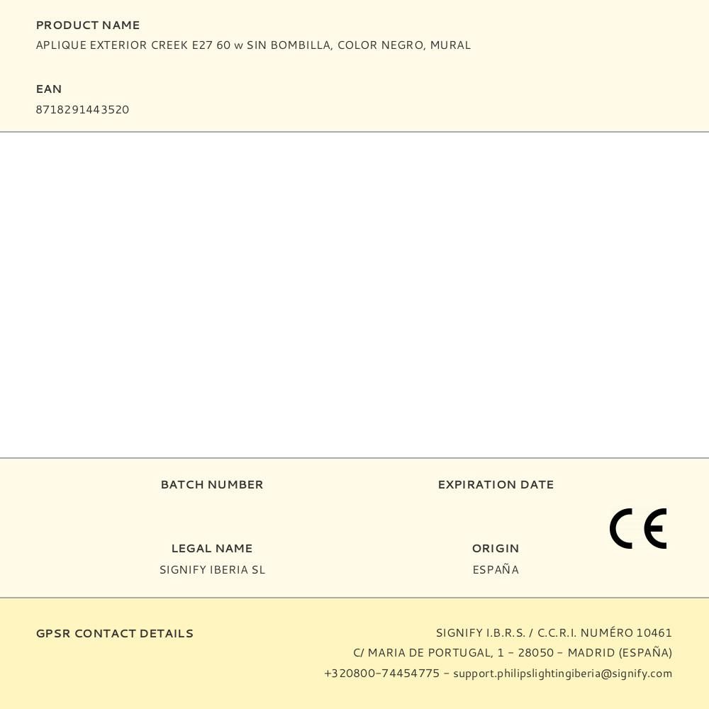 APLIQUE EXTERIOR CREEK E27 60 w SIN BOMBILLA, COLOR NEGRO, MURAL