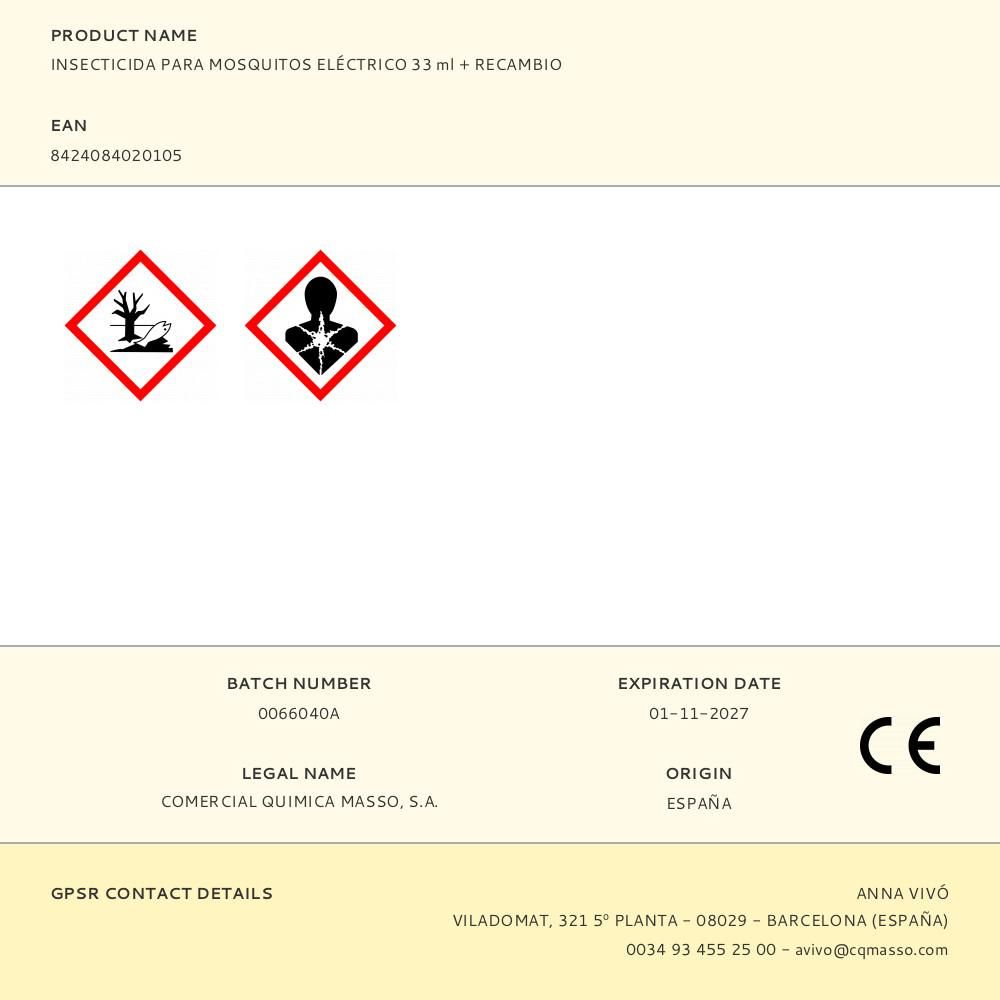APARATO DIFUSOR LÍQUIDO INSECTICIDA MOSQUITOS 33 ml + RECAMBIO. DURACIÓN DE 45 DIAS. EFICAZ CONTRA EL MOSQUITO TIGRE