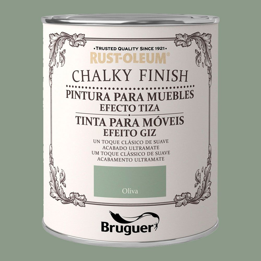 RUST-OLEUM CHALKY FINISH MUEBLES OLIVA 750 ml. PINTURA A LA TIZA PARA UN ACABADO MATE VINTAGE. PINTURA AL AGUA, CON MINIMO OLOR, ACABADO ULTRAMATE, EFECTO EMPOLVADO, GRAN PODER CUBRIENTE EN UNA SOLA CAPA.