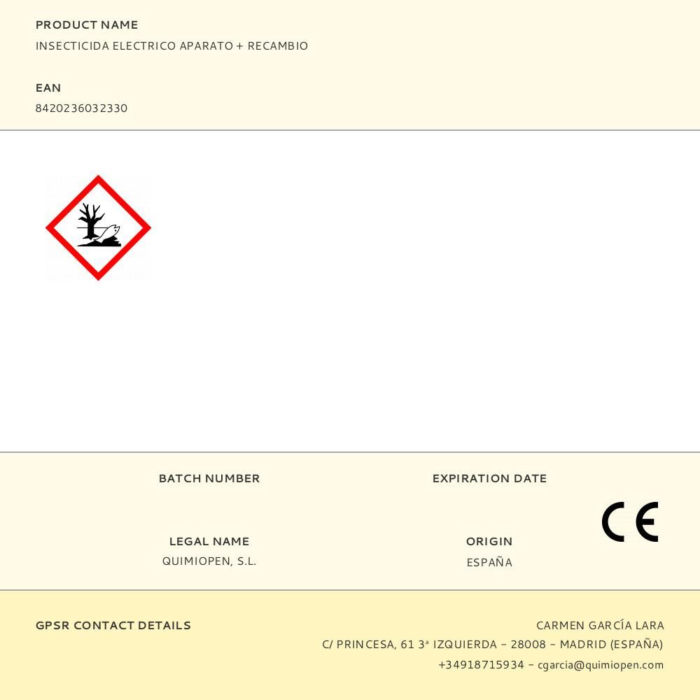 APARATO DIFUSOR LÍQUIDO INSECTICIDA VOLADORES Y RASTREROS + RECAMBIO