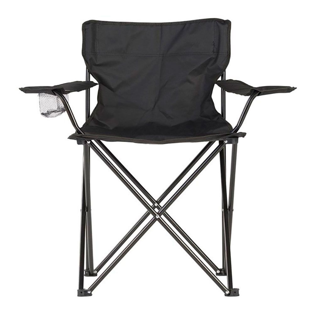 SILLA DE CAMPING PLEGABLE NEGRA. INCLUYE BOLSA DE TRANSPORTE. CON PORTA BEBIDA. MATERIAL: POLYESTER. PESO MÁXIMO HASTA 120 kg. DIMENSIONES 80 x 83,5 x 51 cm