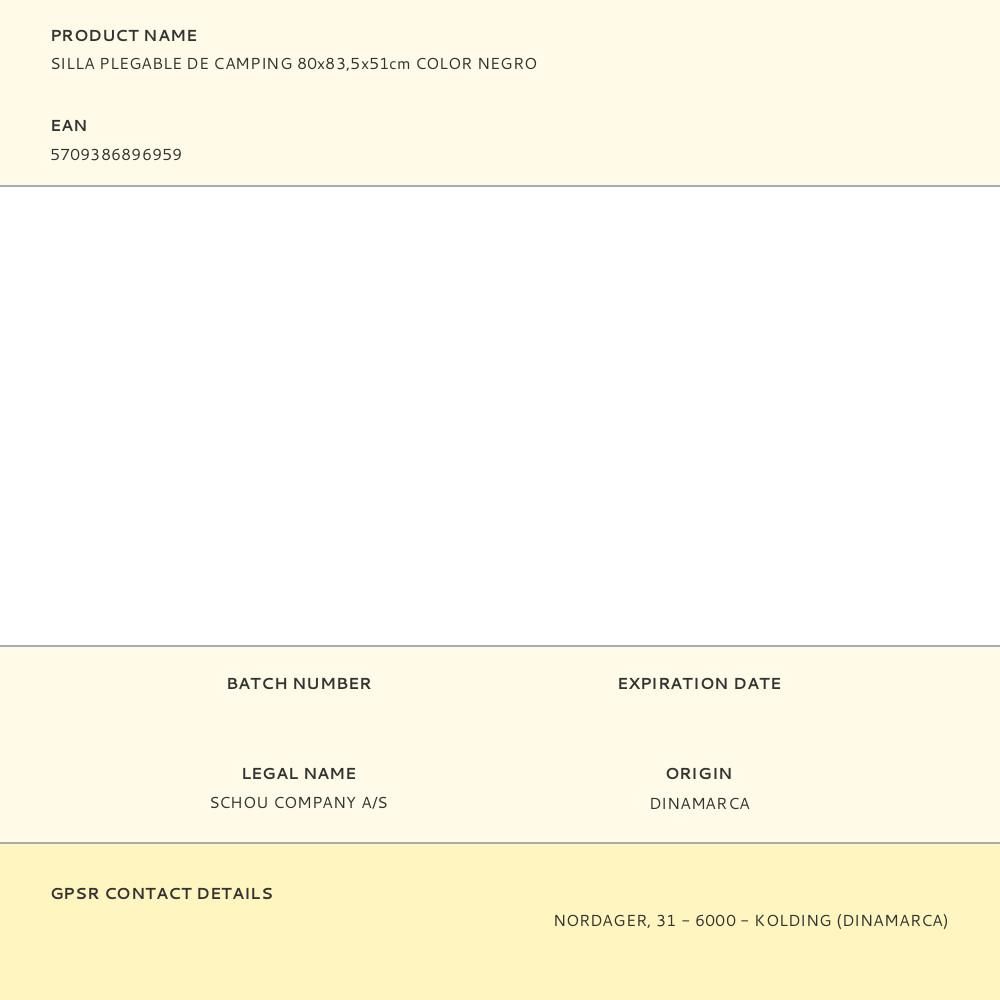 SILLA DE CAMPING PLEGABLE NEGRA, 80 x 83,5 x 51 cm