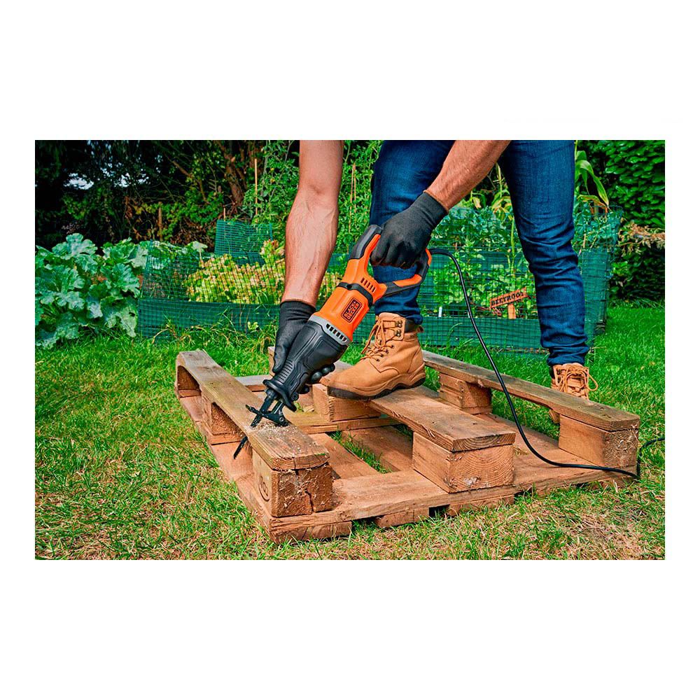 SIERRA DE SABLE 750W BES301-QS BLACK+DECKER. VELOCIDAD VARIABLE. 0-2800rpm, LONGITUD DE CARRERA 20mm, CAPACIDAD MÁXIMA DE CORTE (MADERA) 150mm, CAPACIDAD MÁXIMA DE CORTE (METAL) 10mm, SISTEMA DE CAMBIO RÁPIDO DE LA HOJA. INCLUYE 1 HOJA DE SIERRA PARA MADERA, 1 HOJA DE SIERRA PARA METAL Y SOPORTE PARA RAMAS EXTRAIBLE. CON CABLE. 230V