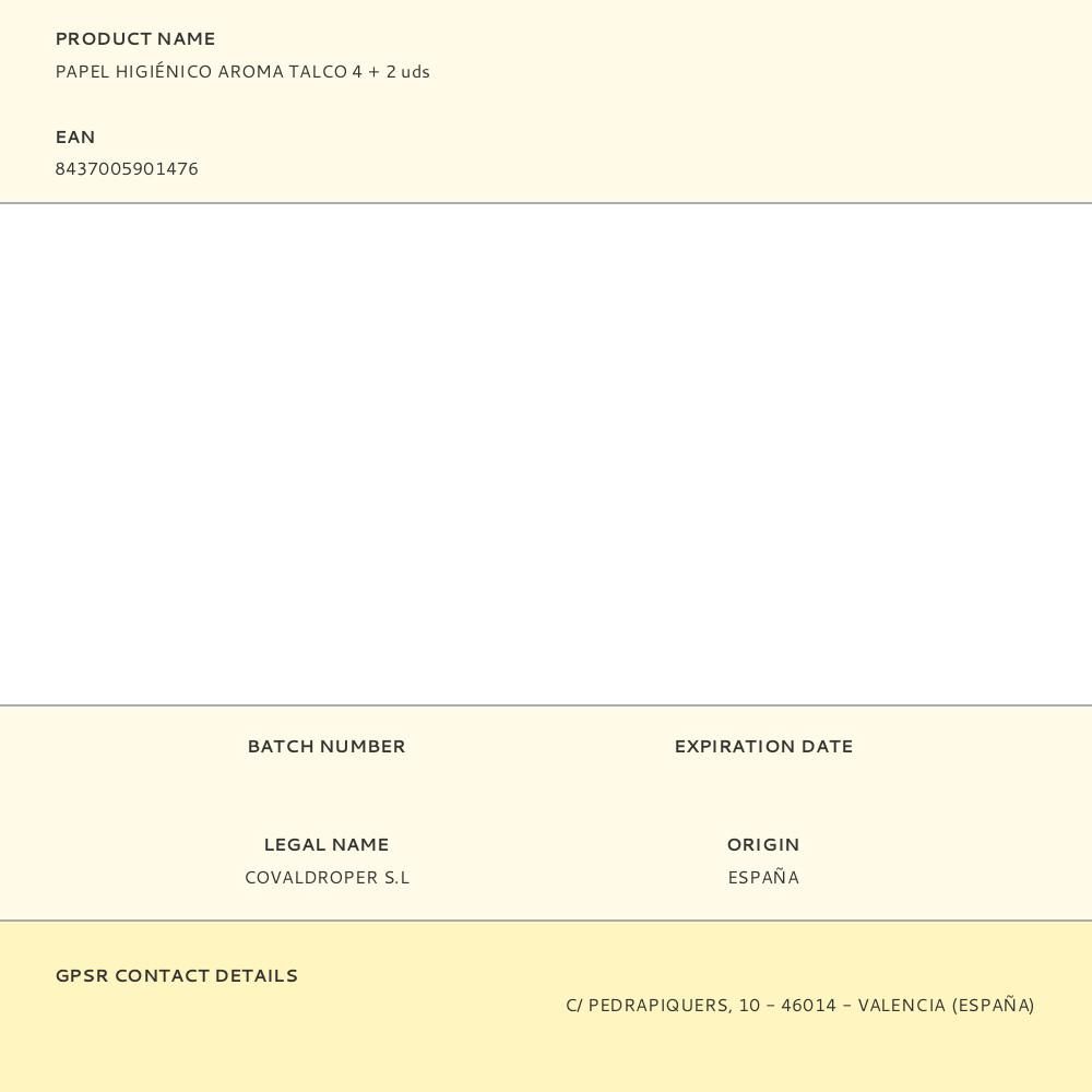 PAPEL HIGIÉNICO AROMA TALCO 4 + 2 uds
