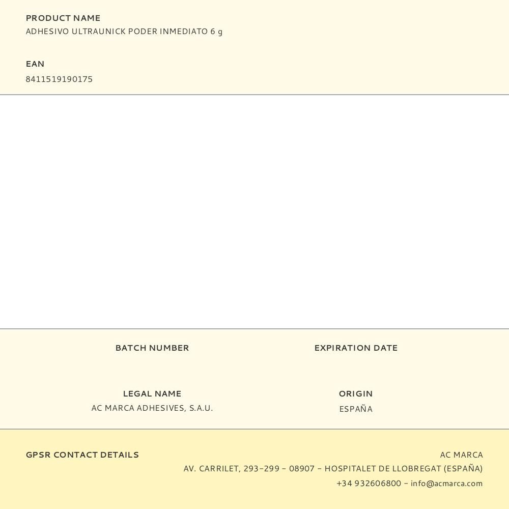 ADHESIVO ULTRAUNICK PODER INMEDIATO 6 g