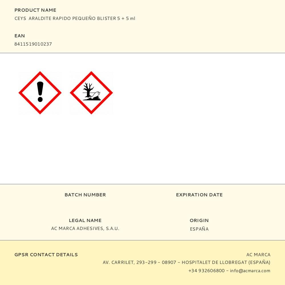 CEYS ARALDITE RAPIDO PEQUEÑO BLISTER 5 + 5 ml