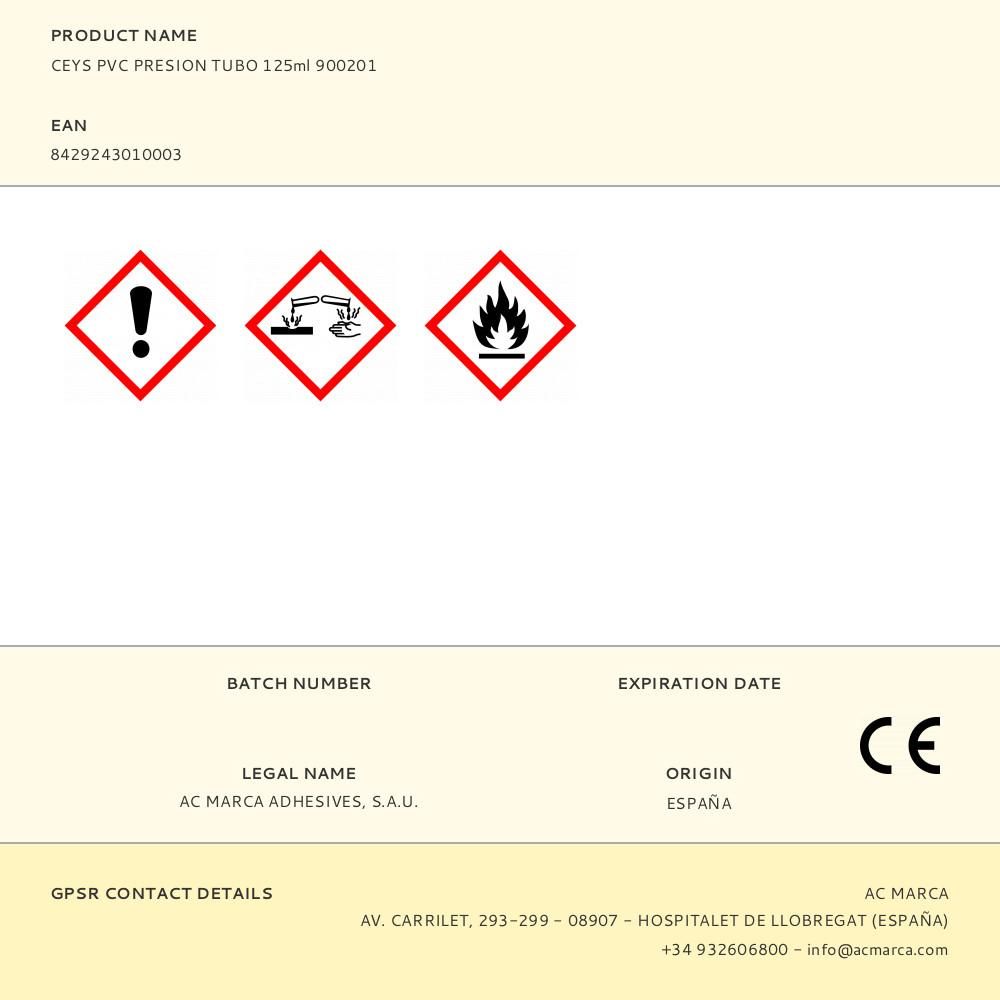 ADHESIVO PVC PRESION TUBO 125 ml NO CONTIENE THF. MAYOR SEGURIDAD DE APLICACIÓN. PERMITE EL PEGADO EN CONTINUO GRACIAS A SU VELOCIDAD. PRESENTA RESISTENCIAS A PRESIÓN SUPERIORES A LAS DE LA PROPIA TUBERÍA