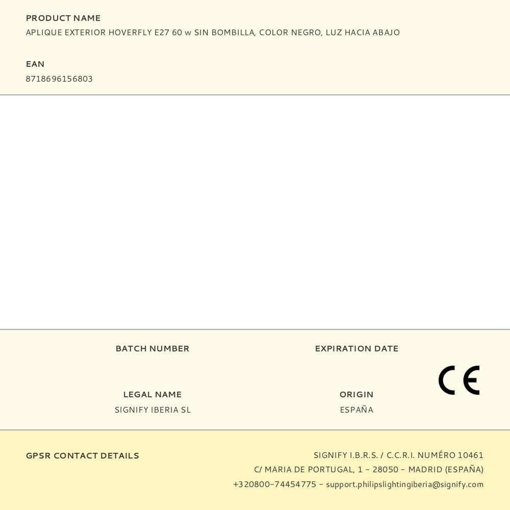 APLIQUE E27 NEGRO MOD. HOVERFLY PHILIPS, NO INCLUYE BOMBILLA, FABRICADO EN ALUMINIO,IP44, TAMAÑO: 24,8x22,4x22,2cm