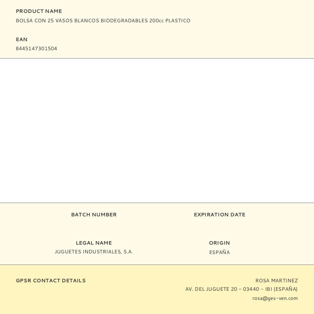 VASOS DE PLÁSTICO BLANCOS 200cc, 25 uds