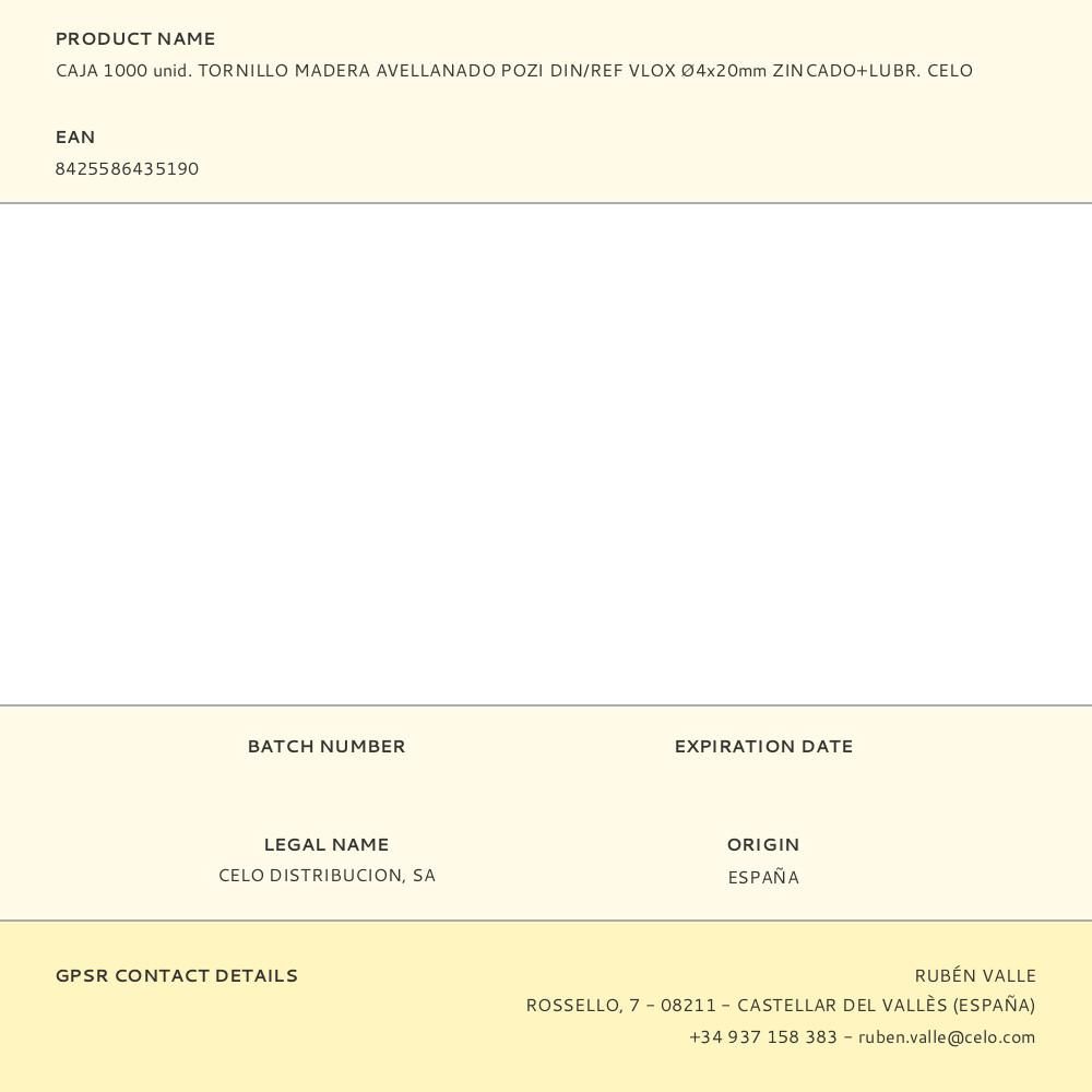 CAJA 1000 unid. TORNILLO MADERA AVELLANADO POZI DIN/REF VLOX Ø4x20mm ZINCADO+LUBR. CELO