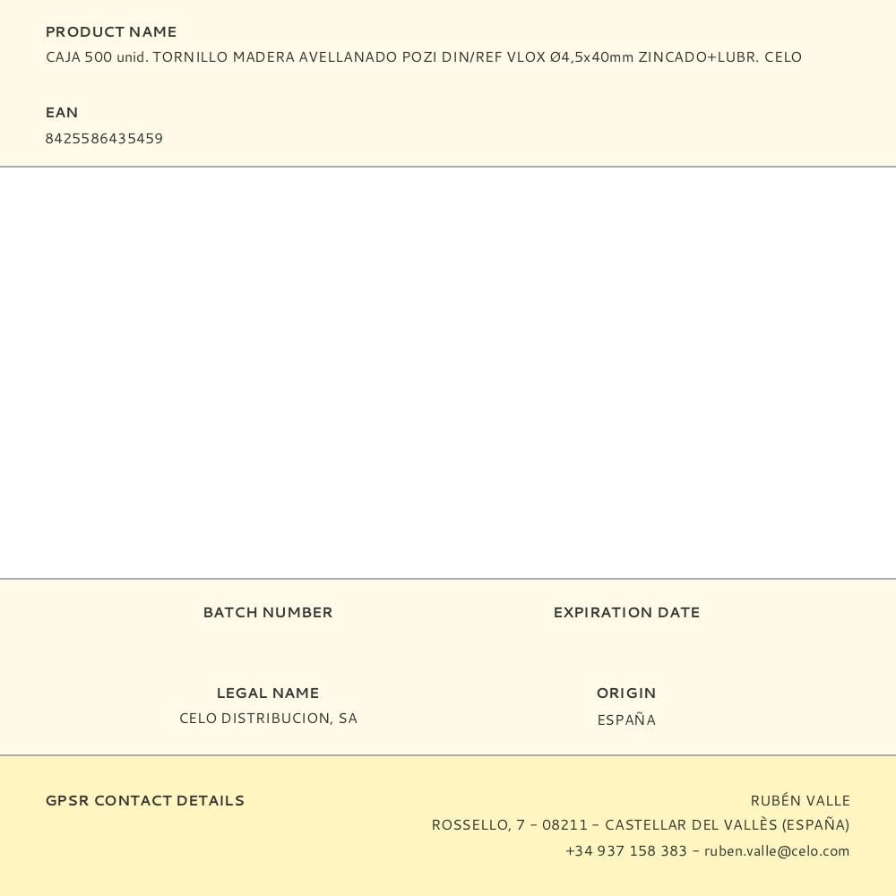 CAJA 500 unid. TORNILLO MADERA AVELLANADO POZI DIN/REF VLOX Ø4,5x40mm ZINCADO+LUBR. CELO