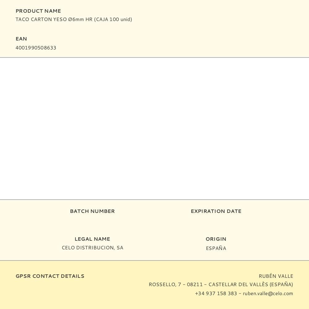 TACO CARTON YESO Ø6mm HR (CAJA 100 unid)