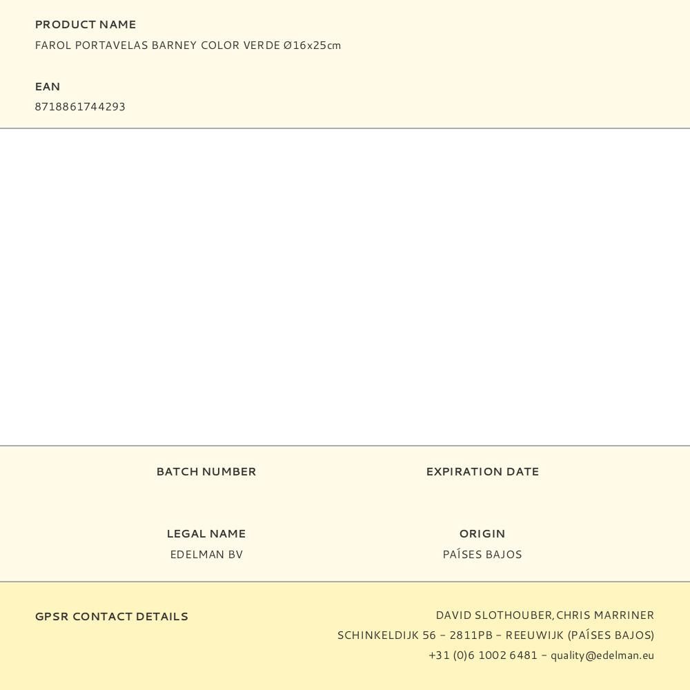 FAROL PORTAVELAS BARNEY COLOR VERDE Ø16x25cm