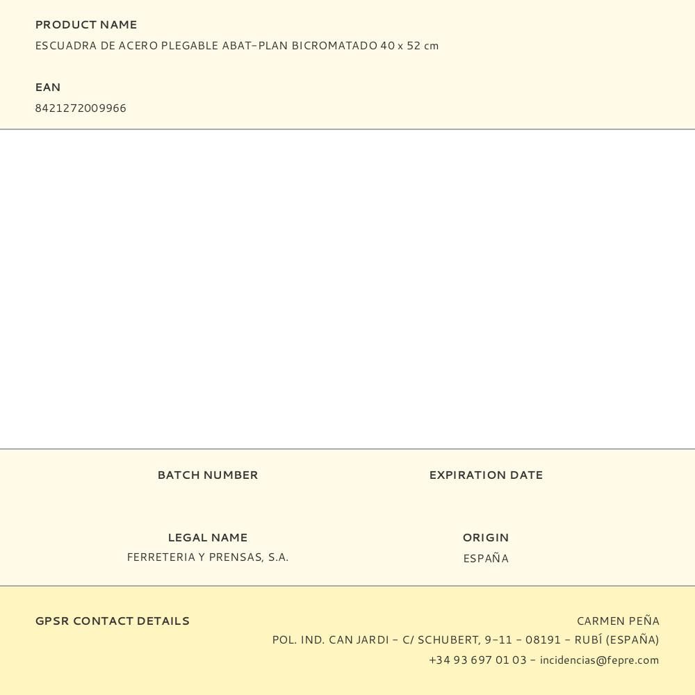 ESCUADRA DE ACERO PLEGABLE ABAT-PLAN BICROMATADO 40 x 52 cm