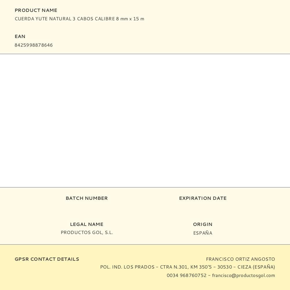 CUERDA YUTE NATURAL 3 CABOS CALIBRE 8 mm x 15 m