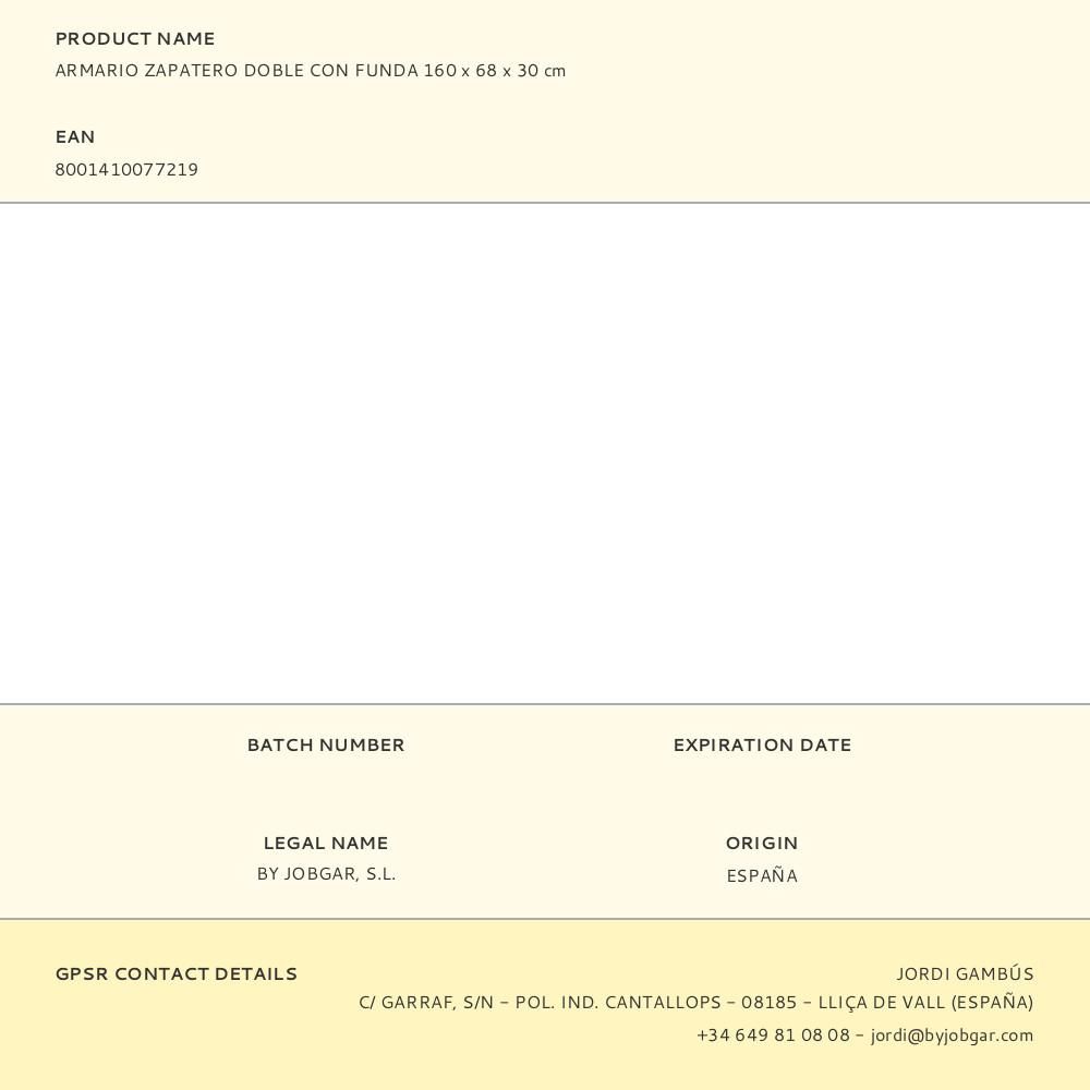 ARMARIO ZAPATERO DOBLE CON FUNDA 160x68x30cm JOBGAR