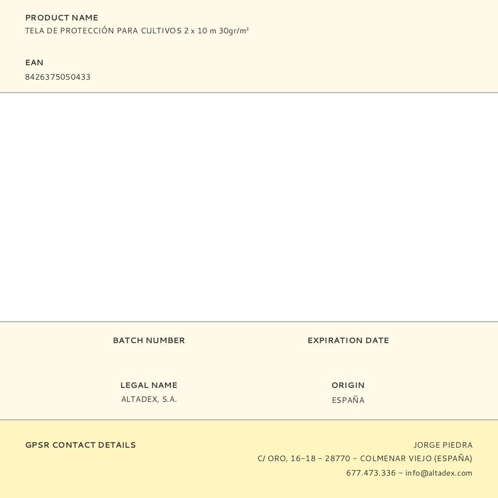 TELA DE PROTECCIÓN PARA CULTIVOS 2x10m. GRAMAJE: 30gr/m². TELA DE PROTECCIÓN PARA CULTIVOS Y PLANTAS, CON TRATAMIENTO U.V. PERMEABLE A LA LUZ, AIRE Y AGUA. EN FORMA DE PAÑO. PROTEGE DE LA LLUVIA, GRANIZO, PLAGAS, PAJAROS. FAVORECE EL CRECIMIENTO Y LA FLORACION. BIOTOP GARDEN