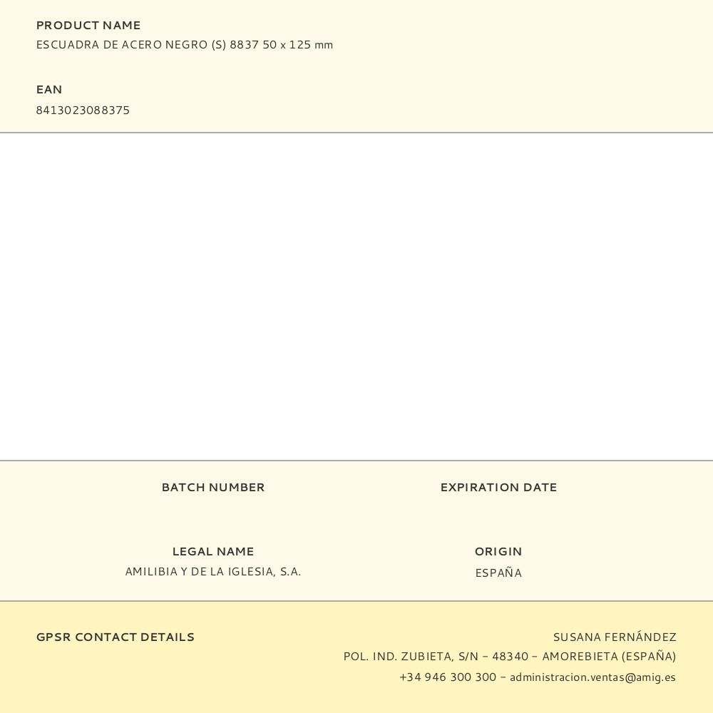 ESCUADRA DE ACERO NEGRO (S) 8837 50 x 125 mm