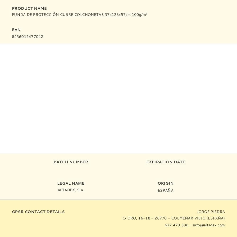 FUNDA DE PROTECCIÓN, CUBRE COLCHONETAS, 37 x 128 x 57 cm, 100 g/m²