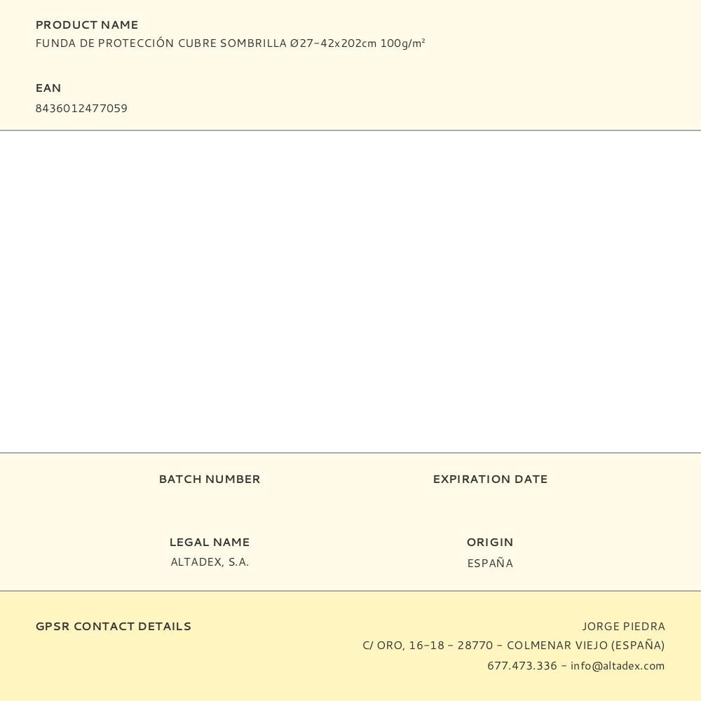 FUNDA DE PROTECCIÓN, CUBRE SOMBRILLA, Ø27-42 x 202 cm, 100 g/m²