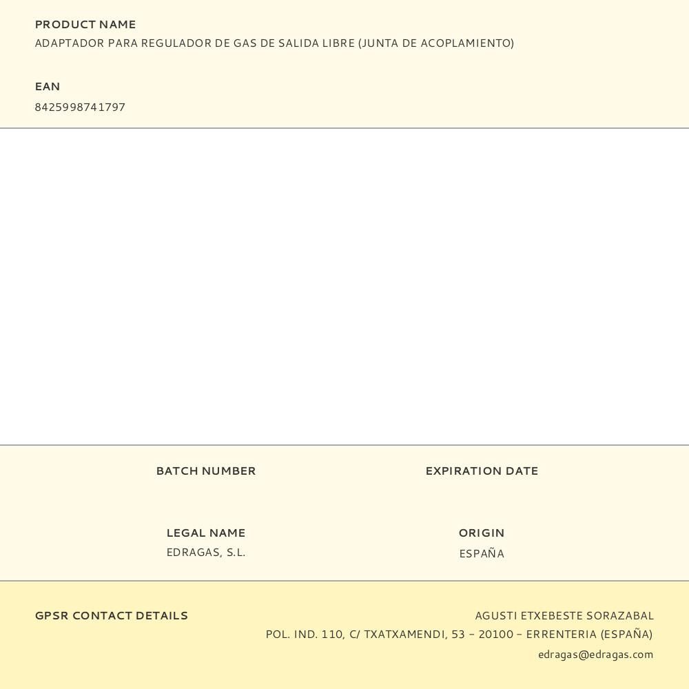 ADAPTADOR PARA REGULADOR DE GAS DE SALIDA LIBRE (JUNTA DE ACOPLAMIENTO)