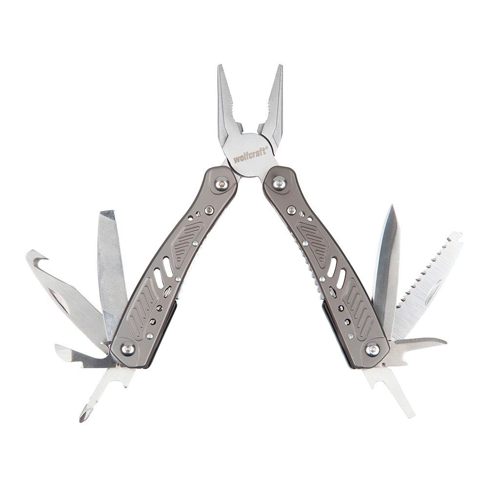 MULTIHERRAMIENTA COLOR METAL, PARA USO PROFESIONAL Y DOMÉSTICO, INCLUYE 13 HERRAMIENTAS + FUNDA