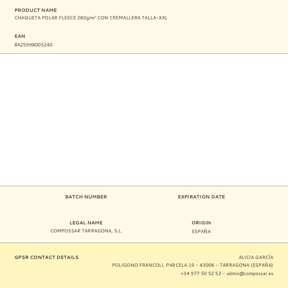 CHAQUETA POLAR FLEECE 280g/m² CON CREMALLERA TALLA-XXL