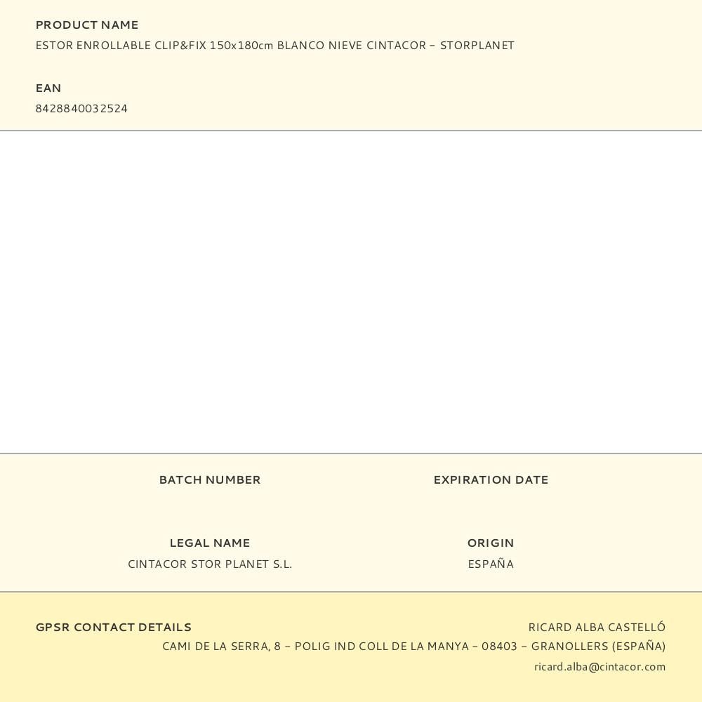ESTOR ENROLLABLE CLIP & FIX BLANCO NIEVE 150 x 180 cm