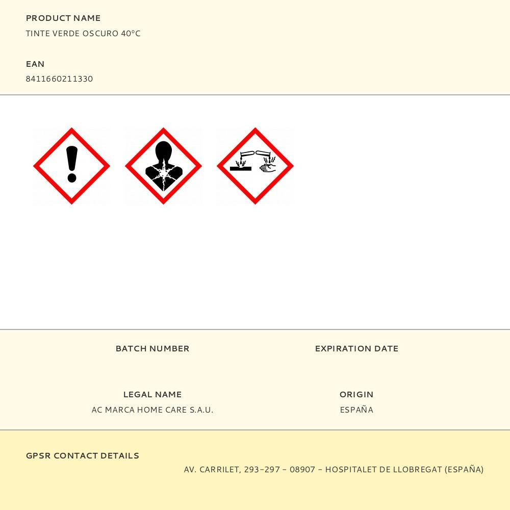 TINTE VERDE OSCURO 40ºC