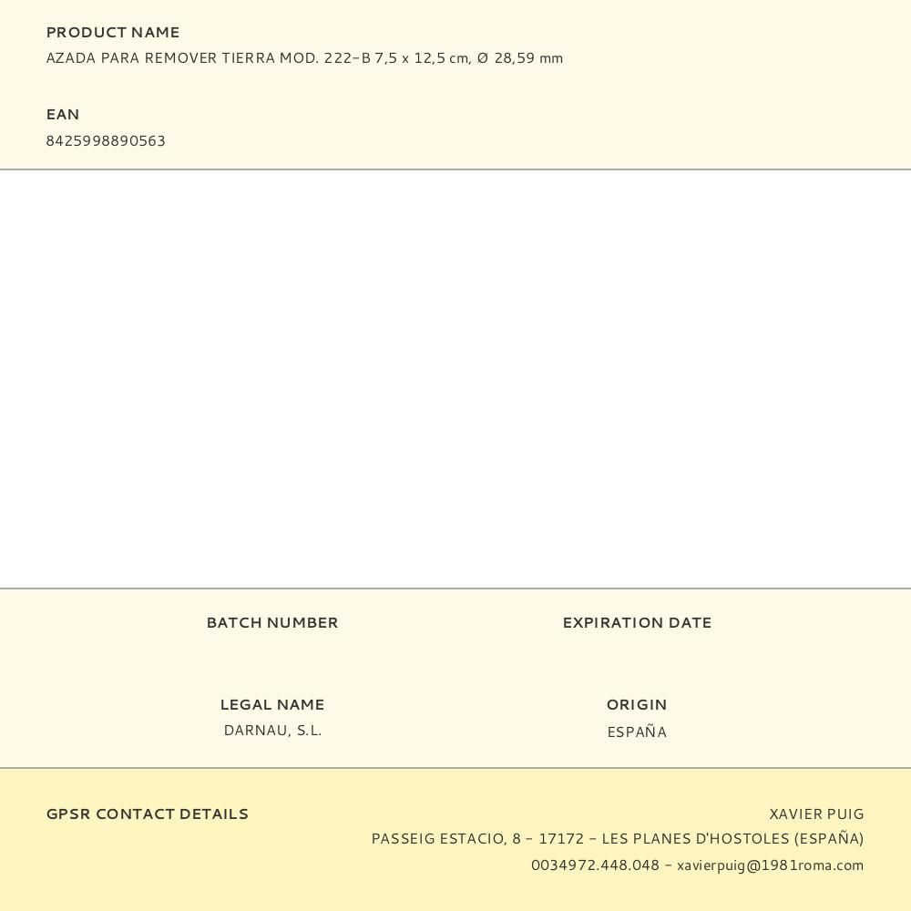 AZADA PARA REMOVER TIERRA MOD. 222-B 7,5 x 12,5 cm, Ø 28,59 mm