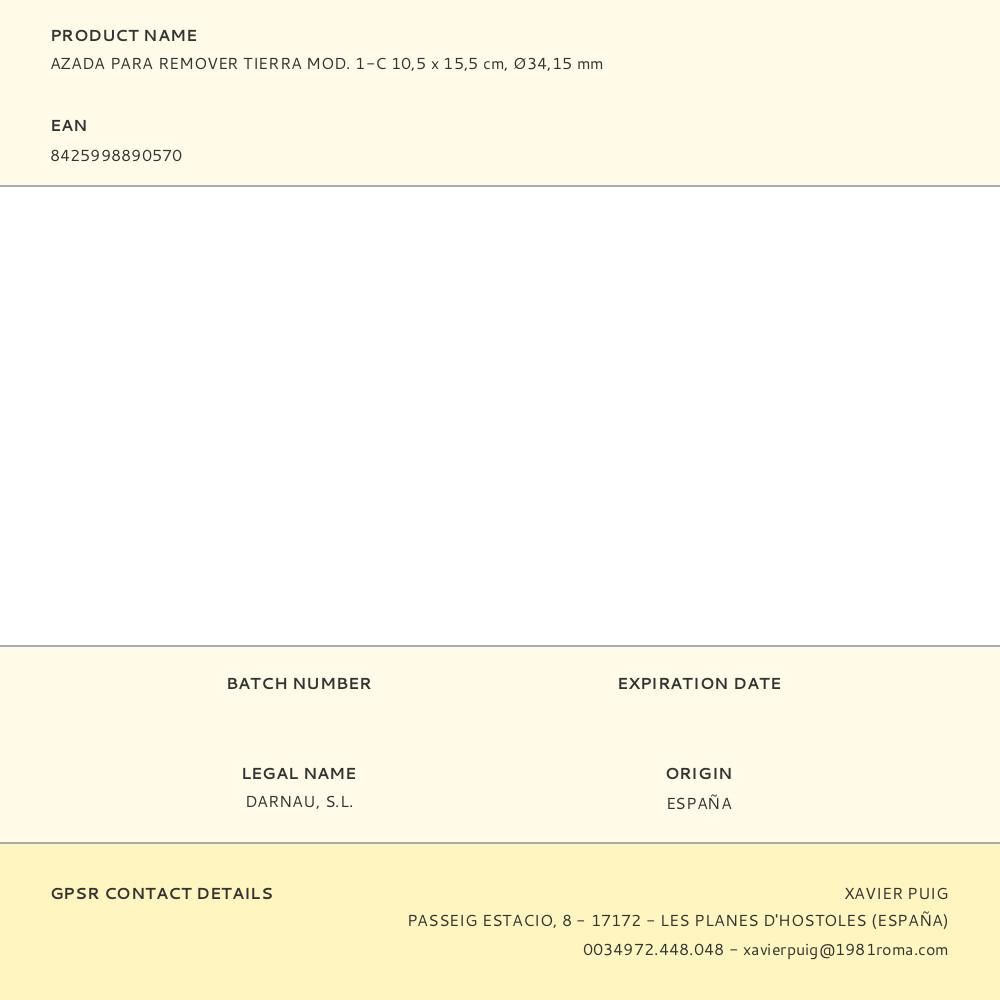 AZADA PARA REMOVER TIERRA MOD. 1-C 10,5 x 15,5 cm, Ø34,15 mm
