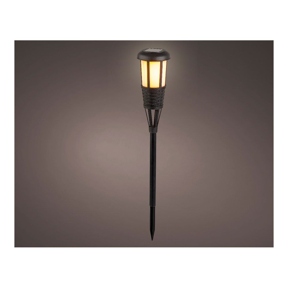ESTACA SOLAR EFECTO MIMBRE COLOR NEGRO. 12 LEDS. 61x10cm