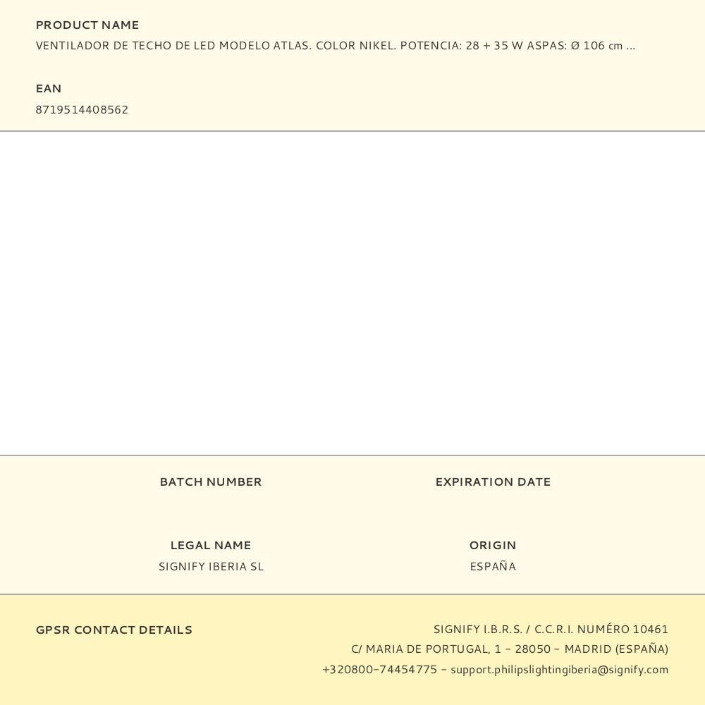 VENTILADOR DE TECHO DE LED MODELO ATLAS. COLOR NIKEL POTENCIA: 28+35W LUZ LED CON POSIBILIDAD DE CAMBIAR LA TONALIDAD DE LUZ 2700K-4000K-5500K ASPAS ABATIBLES. MANDO A DISTANCIA. Ø106cm 42,5Db 230rpm PHILIPS