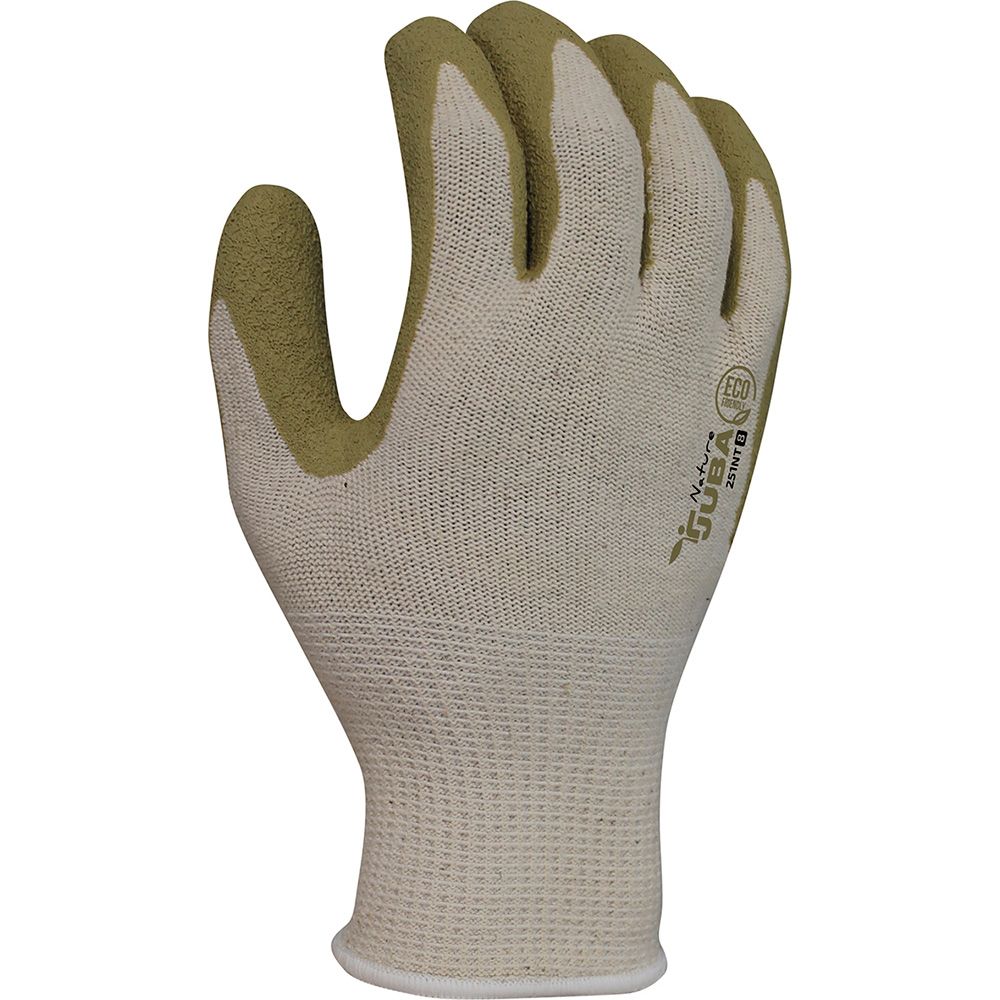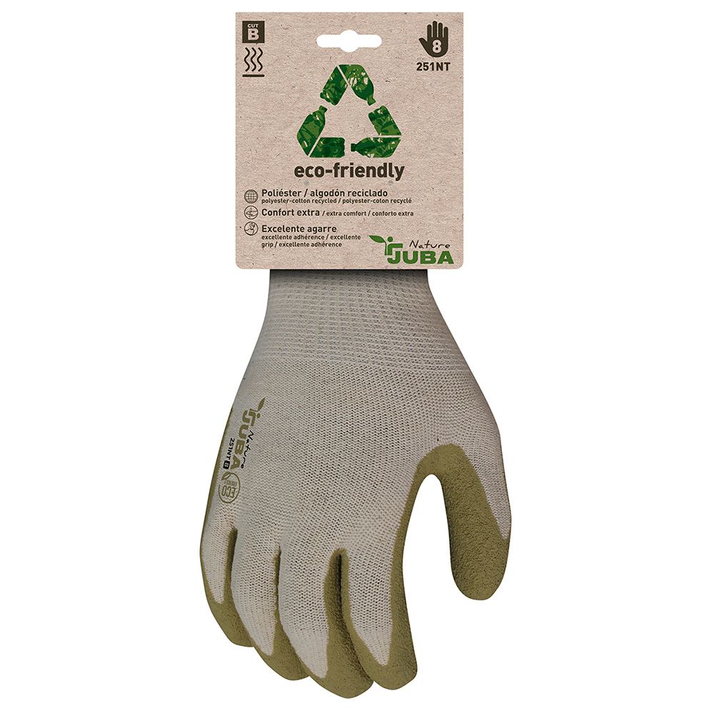 GUANTE DE TRABAJO POLIÉSTER/ALGODÓN T-07 NATURE POLIÉSTER/ALGODÓN RECICLADO RECUBIERTO DE LÁTEX RUGOSO - SOPORTE DE POLIÉSTER/ALGODÓN DE 44% DE FIBRAS RECICLADAS COMPUESTO DE 25% POLIÉSTER Y 19% ALGODÓN - SU FABRICACIÓN IMPLICA UNA REDUCCIÓN DE CONSUMO DE AGUA Y ENERGÍA ASÍ COMO DE HUELLA DE CARBONO Y RESIDUOS DE PLÁSTICO - SÓLIDO AGARRE EN ENTORNOS SECOS Y HÚMEDOS, BUENA RESISTENCIA A LA ABRASIÓN, MAYOR DURABILIDAD - RESISTENTE AL CALOR POR CONTACTO (250°C 15 seg) - ABSORBE EL SUDOR - FUNCIÓN HIGIENIZANTE SANITIZED, PROTEGE LOS GUANTE DE FORMACIÓN DE HONGOS, ÁCAROS Y BACTERIAS, EVITA LOS OLORES, MINIMIZA LA IRRITACIÓN DE LA PIEL